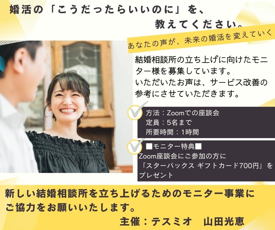 結婚相談所の立ち上げに向けたモニター様を募集しています。