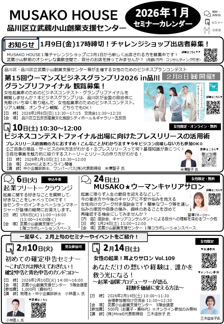 毎月発行しているセミナーカレンダーや開催予定のセミナー・イベントのチラシをご覧いただけます。